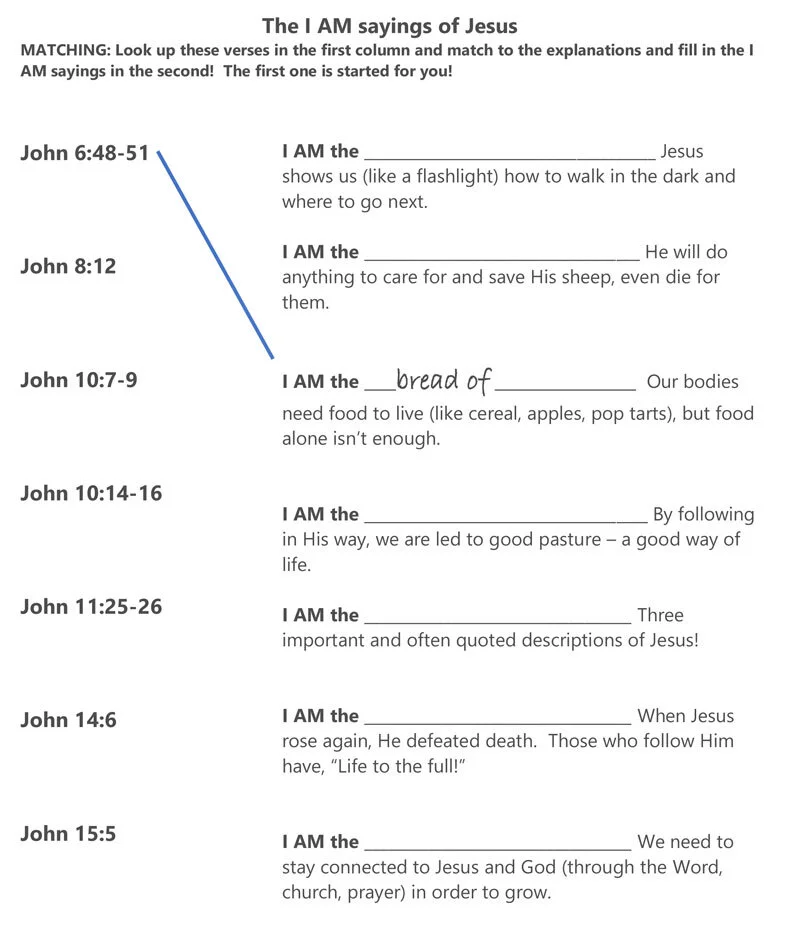 Grab a Bible and look up the verses on the handout. Can you match them to the descriptions in the second column?