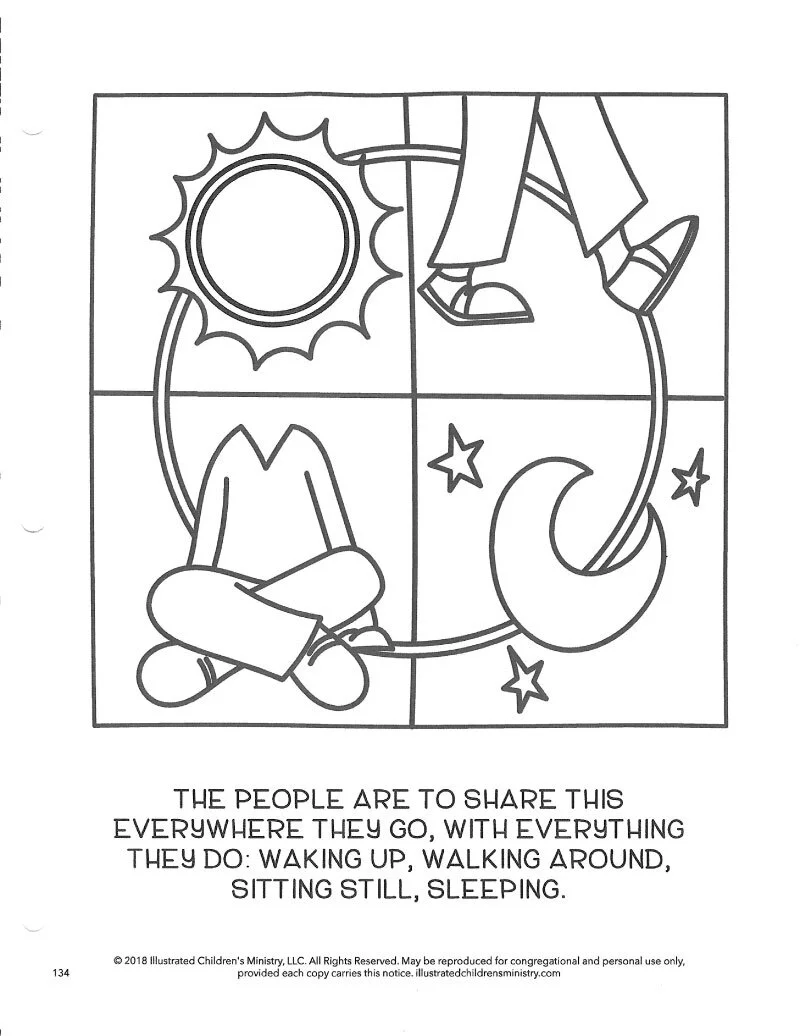 Today’s story is about Moses and the most important commandment that God gave him. When Moses was wandering through the desert with the Israelites God gave him commandments to follow. Moses told the Israelites about all the commandments and he made sure to tell them all about the most important one, Moses said “Listen up, everybody! God is our God, the one true God! And here’s what we’re asked to do: Love God with everything we’ve got, love God with your whole heart, with all your soul, with every ounce of strength you’ve got. Remember what God asks of you, memorize it. Tell God’s words to your children. Talk about God’s words when you wake up in the morning, when you’re sitting still or walking around, when you go to bed at night. Write them down and tie them to your finger, to your forehead. Write them at the doorway of your home, and at the entryway to your town, so whenever you’re going in or out, you see God’s words, and you remember to love God.”